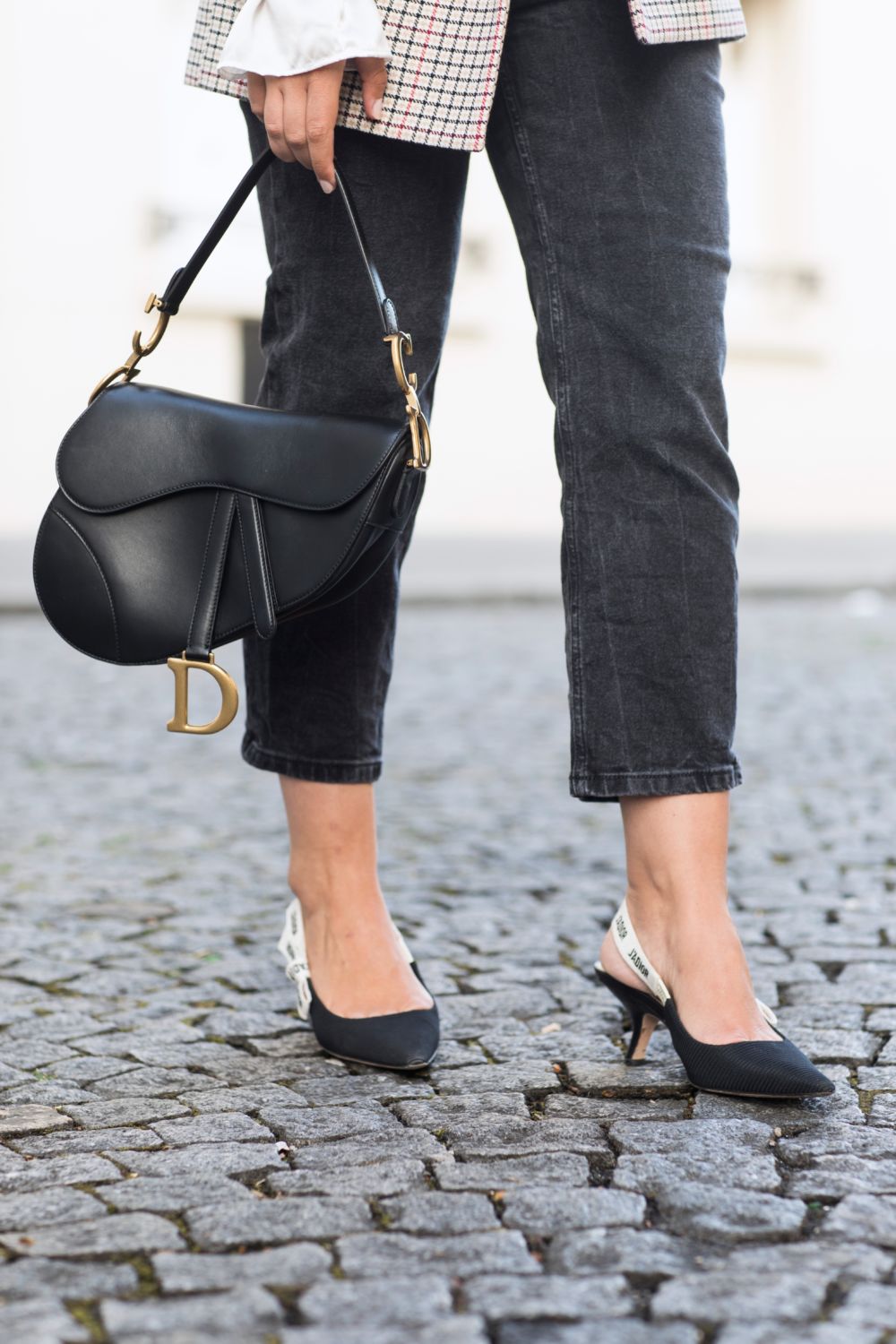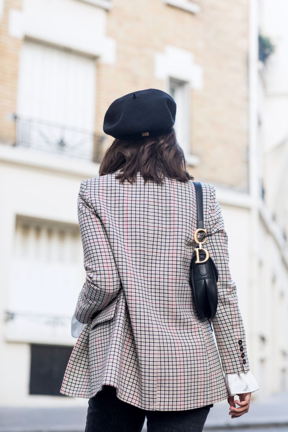 Personnellement, je suis complètement fan de ce sac. J’aime quand les designers du moment retravaillent les archives. Ce it-bag est élégant, vintage et cool au possible. Il a ce petit côté effortless que je ne saurais définir et c’est ça qui me plait chez Dior. Comme autres pièces de la maison, je porte le béret-casquette qui risque de faire un sacré tabac dès que l’automne viendra, une paire de boucles d’oreilles rouges pour rappeler les lignes de ma veste et mes escarpins J’Adior que j’aime passionnément. Parée pour le retour des arbres aux mille couleurs et des températures frôlant à peine les 15°C (oui je suis une fille du froid !).