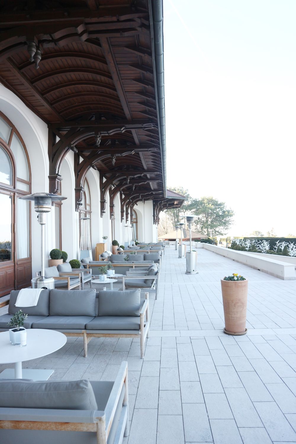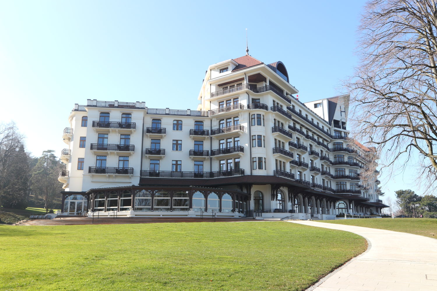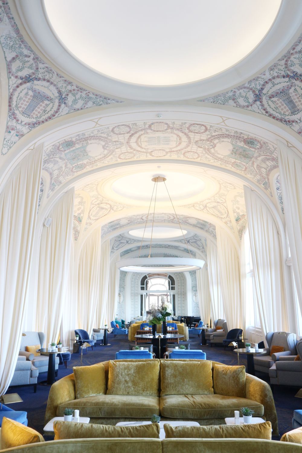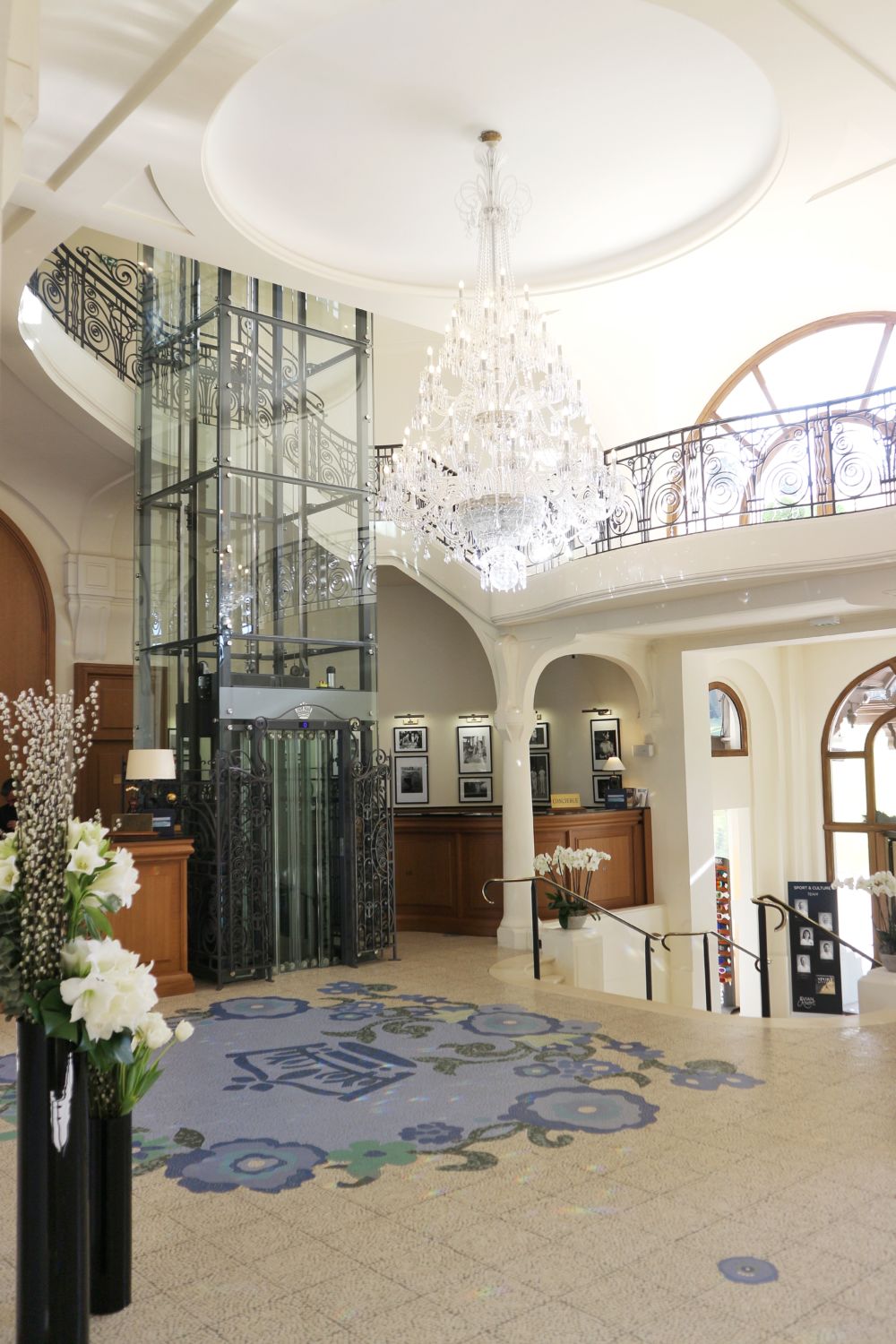 Après 4h30 de train de Paris, nous sommes bien arrivés à l’Hôtel Royal et si il y a bien une chose que j’apprécie lorsque que j’arrive dans un hôtel aussi prestigieux, c’est de m’attarder sur la devanture, l’odeur quand on passe la porte de l’établissement et l’accueil que l’on nous réserve. Ici, l’hôtel est entouré de verdure et offre une vue sur le Lac Léman incroyable, dès que vous entrez dans le lobby une certaine essence agréable se dégage et le staff qui vous salue et qui s’occupe de votre check-in est vraiment adorable et souriant. N’ayez crainte du statut palace qui peut parfois effrayer et sembler trop précieux, à l’Hôtel Royal, on se sent à la maison et entouré de personnes compétentes et chargées en anecdotes historiques. L’hôtel date de 1905 et je peux vous dire que beaucoup de monde est venu séjourner ici. Entre princes, sultans, reines… toutes ces personnalités adoraient venir se ressourcer et profiter de l’air pur d’Evian. Marcel Proust y rédigea même des chapitres de son livre, À la recherche du temps perdu.