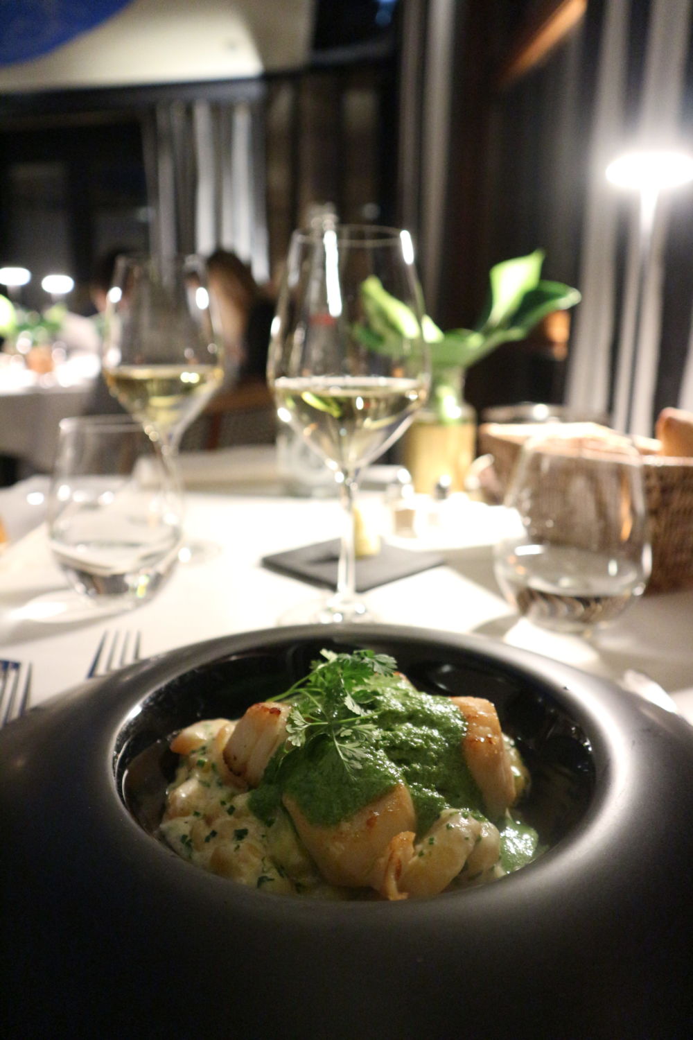 Concernant l’instant Bar Éphémère, une terrasse Veuve Clicquot était installée à l’extérieur, avec vue sur le lac. L’espace avait des allures de chalet cosy montagnard avec des plaids et des bougies et nous avons pu siroter du champagne avec de délicieuses huitres. Un moment vraiment magique et chaleureux dans le froid glacial des Alpes. Suite à cette exquise mise en bouche, toute l’équipe du fameux restaurant gastronomique Les Fresques nous attendait. Ce genre de lieu me fascine et pour le coup, la décoration de celui-ci était majestueuse. Concernant le diner, nous avons été épatés par les mets. Pour commencer, nous avons opté pour “Le Caviar Osciètre” et “Les Écrevisses du Lac Léman”, puis nous sommes restés côtés mer avec “Les Saint Jacques” et “Le Homard Bleu” pour finir avec un “Chocolat Noir Andoa Bio”. Un repas époustouflant où nous avons pris un réel plaisir à savourer chaque saveur.