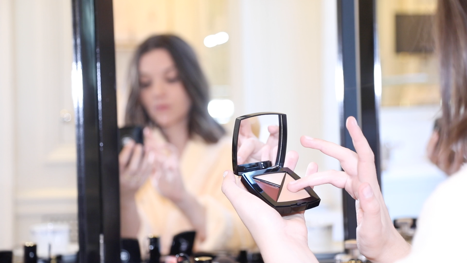 Dans cette vidéo, beaucoup de clins d’oeil à des personnes formidables qui se reconnaîtront je l’espère, des souvenirs, mes produits préférés comme le Blue Sérum ou encore la Poudre Belle Mine qui ne m’a jamais quitté. On peut voir aussi le parfum Gabrielle qui me fait penser, à chaque fois, à cette magnifique escale dans le sud. On peut apercevoir de la joaillerie, des portraits de Coco… De nombreux signes sont présents et c’est ce qui me plaît le plus dans ce court instant immortalisé par mon amie Claire Guillon. Quand je me repasse cette vidéo, j’ai le sourire car je repense à tous ces souvenirs, ces éclats de rire ou encore à mes larmes au téléphone quand la Beauté m’invita à mon premier défilé Chanel.