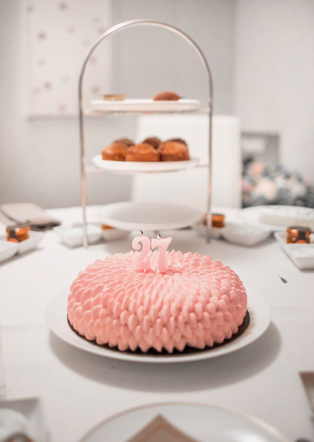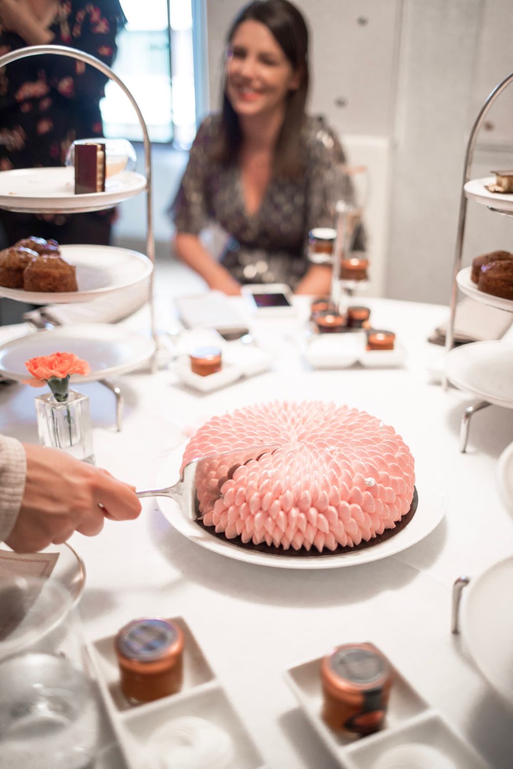 Concernant les pâtisseries, le Mandarin Oriental avait encore une fois tout prévu. Entre scones (incroyables), petits sandwichs salés, Saint-Honoré, Vanilla (mon gâteau préféré au Mandarin Oriental) et autres gourmandises, mes invités pouvaient se régaler. Autre belle surprise de la part du palace, le chef pâtissier, Adrien Bozzolo, avait pensé à la perfection mon gâteau d’anniversaire. Tout de rose vêtue, cette œuvre gustative était à la noix de coco avec une touche de framboise. Un gâteau léger comme un nuage qui a fait l’unanimité auprès de mes proches. Quel honneur de voir arriver dans la suite ce grand chef pâtissier !