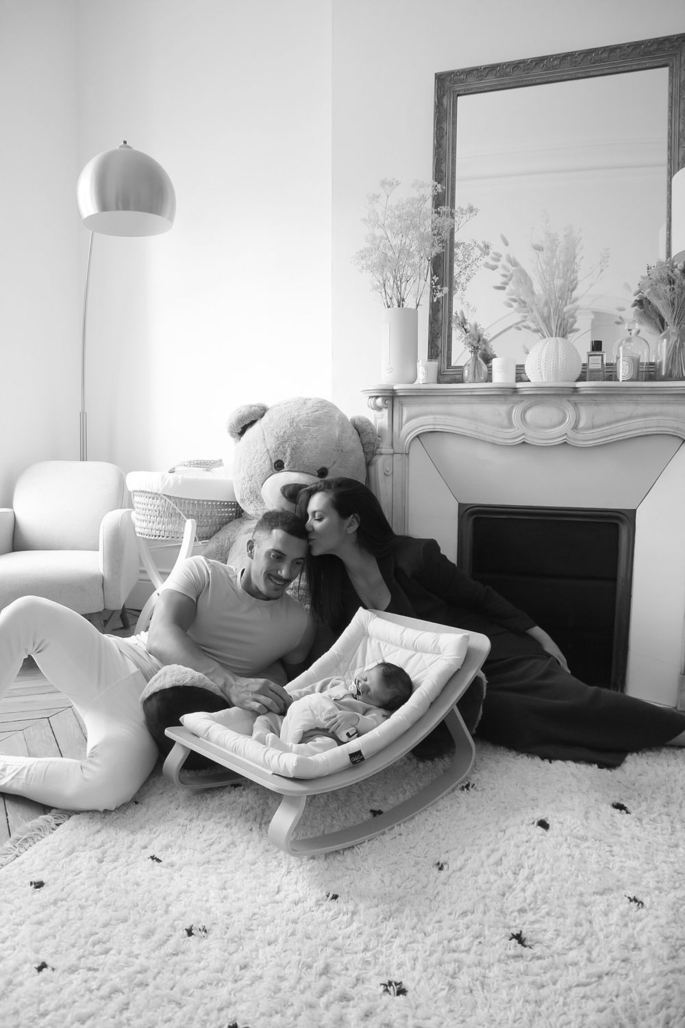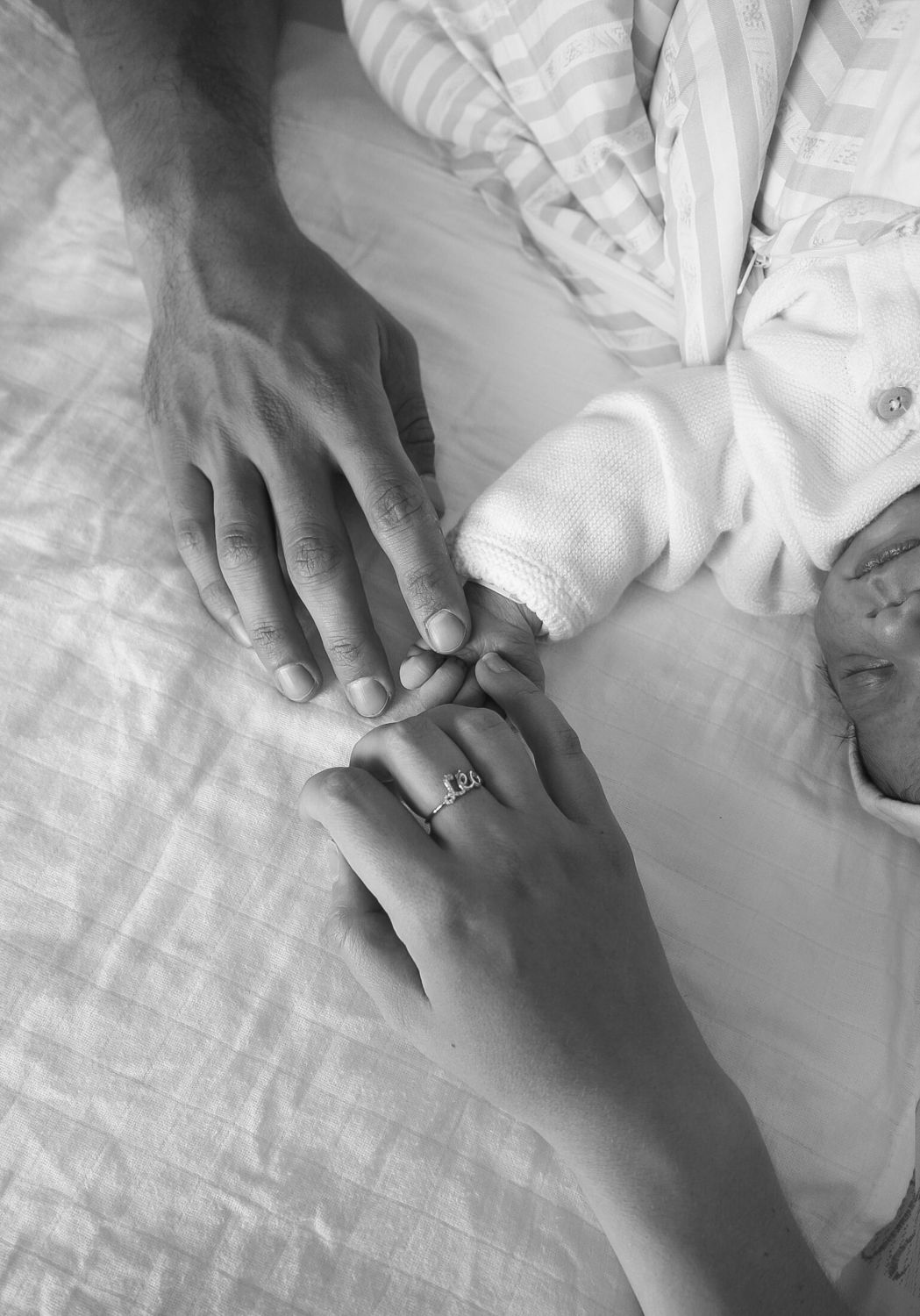 Une fois notre petit Léo sorti de mon ventre, est arrivée l’heure de lui faire les premiers soins, de le peser et le mesurer. Ce petit bout pesait 3,790kg pour 52cm. Un beau bébé plein de vie dès ses premiers instants. Baptiste a pu lui donner le biberon et nous avons pu ensuite arriver en chambre avec les valises. Je crois qu’il était presque 3 heures du matin mais je n’avais plus aucune notion du temps. Avec toutes les émotions que nous avions vécues, je n’ai pu fermer l’oeil de la nuit et ce fut le cas pour toutes les autres qui ont suivi à la maternité. J’étais entourée de sages-femmes et d’assistantes de puériculture absolument géniales, fortes et riches de précieux conseils mais il me tardait de rentrer à la maison, dans mon cocon. Cette aventure (travail + accouchement) a duré plus de 24 heures et j’étais lessivée de tout. Question “séquelles” de l’accouchement, j’ai eu quatre petits points suite à une déchirure et c’est tout. Vint ensuite les lochies (Les lochies sont des pertes qui contiennent du sang, ainsi que du mucus cervical mais également des résidus utérins sous forme de caillots. Elles contiennent, en outre, des débris de membrane placentaire.) et les fameux hémorroïdes (oui j’ai poussé plus d’une heure c’était quasi inévitable mais autant vous dire les choses non ?!). Ce n’était pas du tout confortable la première semaine après l’accouchement mais tout rentre dans l’ordre doucement. Les suites de couches ne sont pas très drôles pour nous mais quand on regarde son bébé on relativise énormément. En parlant de tout ça, je souligne une nouvelle fois à quel point il est important que la personne qui partage votre vie soit au courant de tout ce qui se passe après l’accouchement. Pour ma part, je me suis énormément reposée sur Baptiste quand ça n’allait pas. J’ai eu une chute d’hormones assez virulente et il a été très très présent. J’ai pu mettre des mots sur mes joies qui m’ont fait couler toutes ces larmes mais aussi exprimer ma douleur quand j’avais mal, quand je ne pouvais pas marcher ou m’asseoir à cause de ces fichus hémorroïdes.