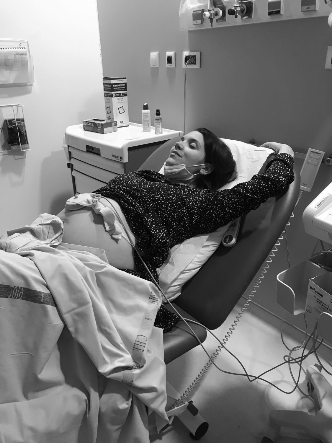 En arrivant à la maternité, premier coup dur, avec le Covid, le papa ne peut pas passer l’entrée mais on m’accueille agréablement et avec le sourire. Un test urinaire et un PCR plus tard et me voilà dans une petite salle avec un sage-femme bien trop cool qui examine mon col et qui me fait un monitoring. Les contractions sont là mais je ne suis dilatée qu’à 1 cm (pour accoucher il faut être à 10 cm). Malgré la souffrance, je vais devoir retourner à la maison pour continuer le travail. J’avais le choix de rester à côté de l’hôpital mais j’ai préféré repartir dans mon cocon, avec mon futur mari. On me dit de revenir d’ici 2 bonnes heures pour voir l’évolution. En tout cas, c’est le jour-j, mon bébé va naître le 18 août !